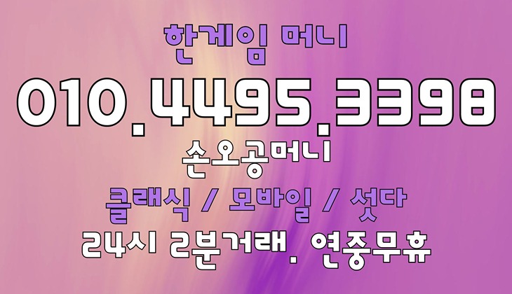 안전하고 편리한 한게임머니상24시간 거래는 ‘손오공머니’와 함께하세요. 상담 및 문의는 010-4495-3398로 연락 주세요.