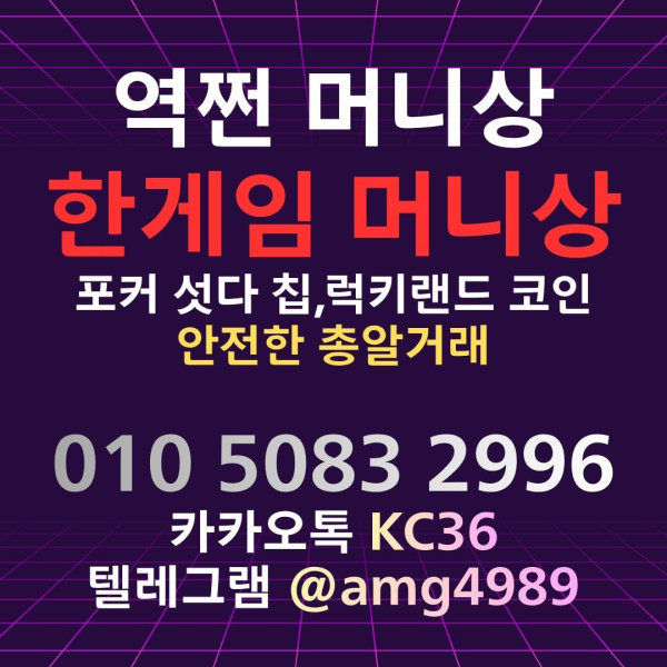 한게임머니상 역전머니(부자 국민 통합) 모바일 ok 클래식 ok 누누 0 16 11.23 01:03 좋은 가격과 좋은 서비스로 모시겠습니다. 문의 주세요~ 한게임 포커 역쩐머니상에서 시세 확인하고 포커 머니 사고팔기 한게임 포커 역쩐머니상에서 럭키랜드 모바일 코인 시세 확인하고 포커머니를 구입하거나 판매해 보세요. 24시간 대기,연중무휴,5분내 응답. 한게임바둑이,한게임홀덤,한게임하이로우,한게임섯다,한게임럭키랜드 모두 가능합니다. 한게임머니상 역쩐M상 24시간 연중무휴,5분내 처리,최저마진 010.5083.2996 카카오톡 KC36 텔레그램 @amg4989