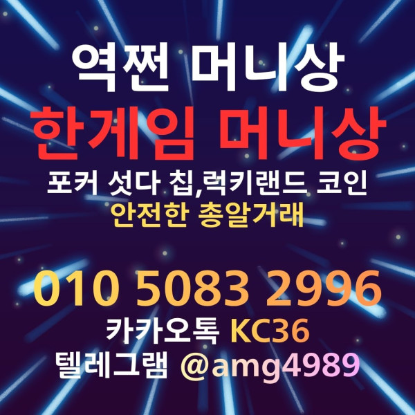 한게임머니상 역전머니(부자 국민 통합) 모바일 ok 클래식 ok 구구 0 20 11.20 05:54 좋은 가격과 좋은 서비스로 모시겠습니다. 문의 주세요~ 한게임 포커 역쩐머니상에서 시세 확인하고 포커 머니 사고팔기 한게임 포커 역쩐머니상에서 럭키랜드 모바일 코인 시세 확인하고 포커머니를 구입하거나 판매해 보세요. 24시간 대기,연중무휴,5분내 응답. 한게임바둑이,한게임홀덤,한게임하이로우,한게임섯다,한게임럭키랜드 모두 가능합니다. 한게임머니상 역쩐M상 24시간 연중무휴,5분내 처리,최저마진 010.5083.2996 카카오톡 KC36 텔레그램 @amg4989